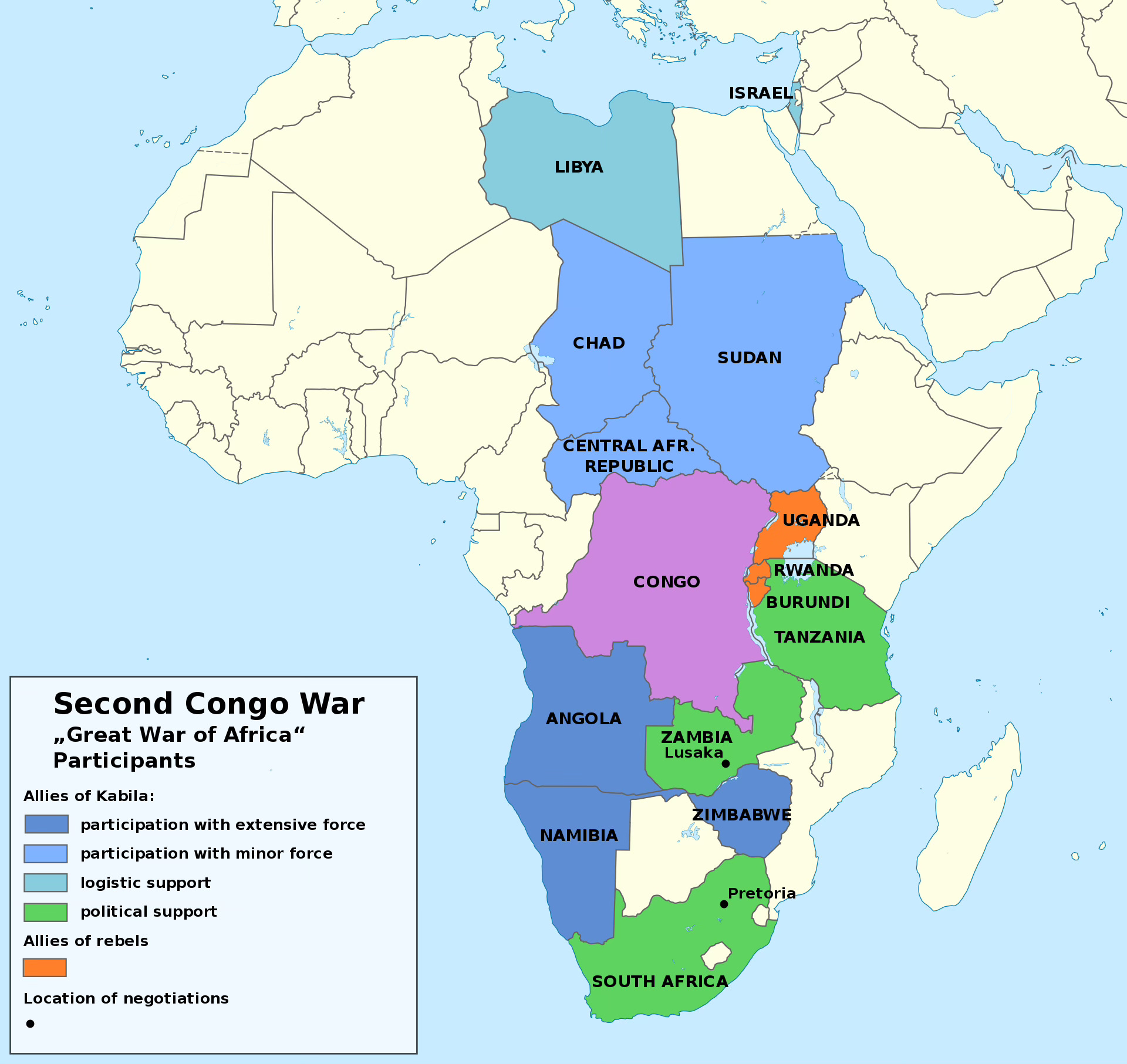 But what saved Kabila was the intervention of Angola and Zimbabwe on his behalf. Chad and Namibia soon joined Kabila's cause, while Burundi sided with the rebels. What might have been a swift toppling of Kabila's rule instead spiraled into prolonged mayhem.