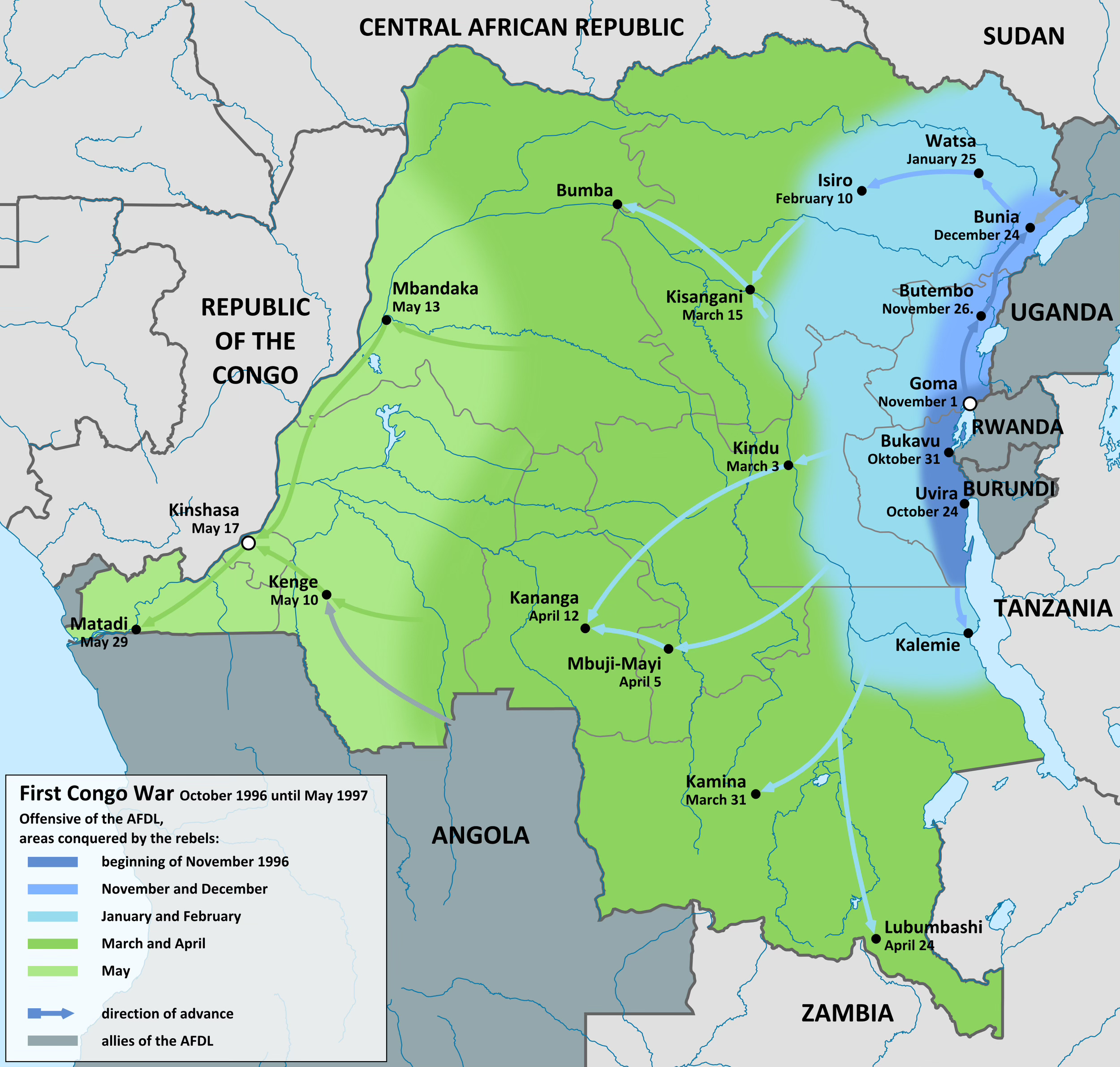 The resistance coalition was named the Alliance of Democratic Forces for the Liberation of Congo (ADFLC). Museveni wanted it to be fronted by a Zairian to make it appear less like a foreign invasion force. The choice fell on Laurent-Désiré Kabila.