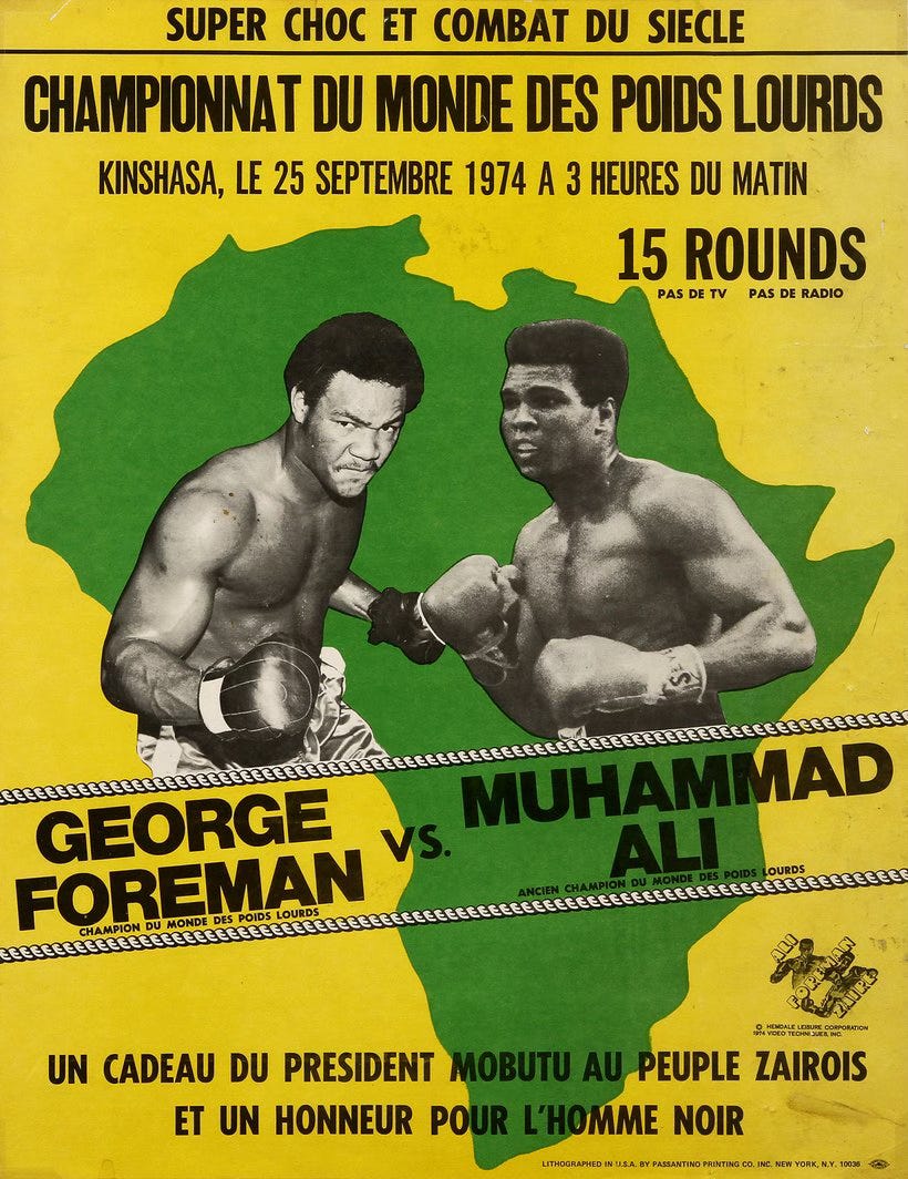 In 1974, in a massive PR campaign, the world heavyweight boxing championship match between George Foreman and Muhammad Ali was held in Kinshasa. The Rumble in the Jungle was one of the most remarkable sporting events of the 20th century and became a crown jewel of Mobutu's leadership of the still-young nation.